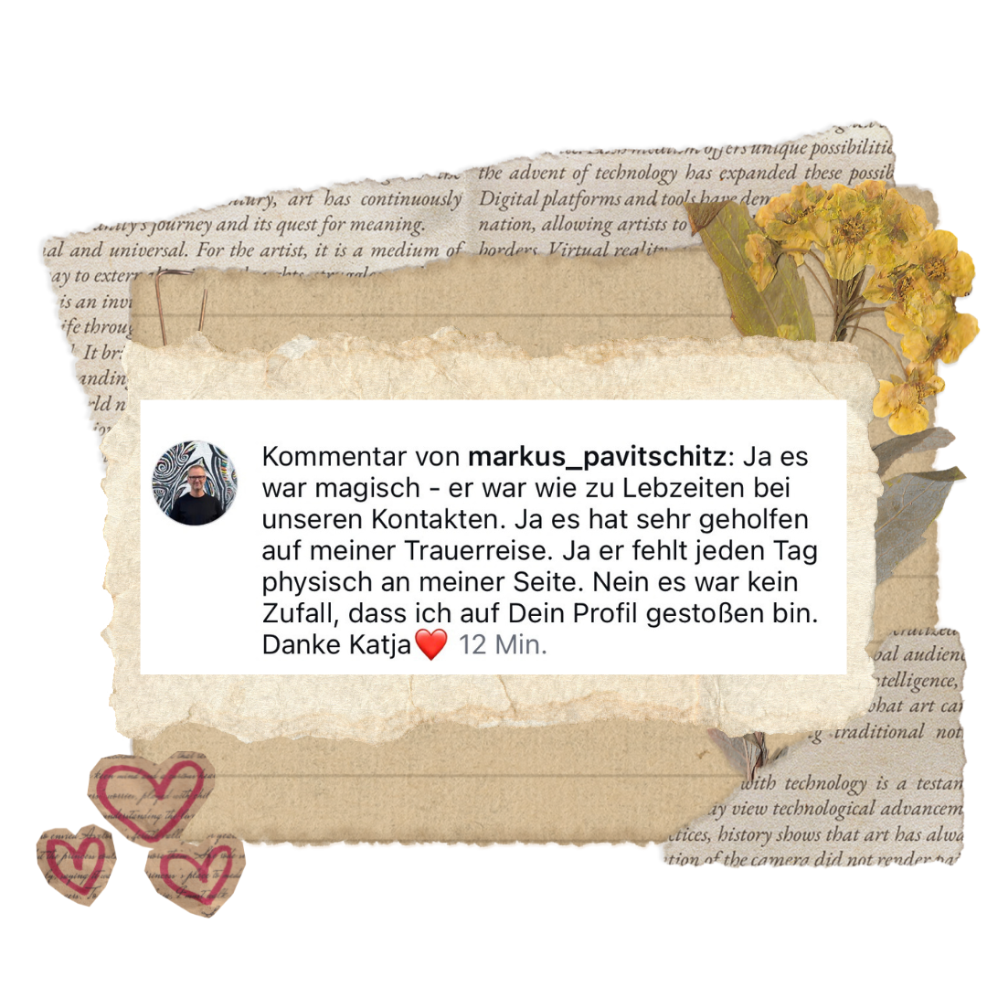 Und wenn du dir die Verbindung zu deinem nun jenseitigen Lieblingsmenschen wünschst oder den Kontakt zur Energie allen Lebens oder deinem Higher Self aufnehmen möchtest, dann ist auch das Teil unserer Arbeit. Jenseitskontakt und Channeling sind kein Extra. Sie sind selbstverständlicher Teil davon.